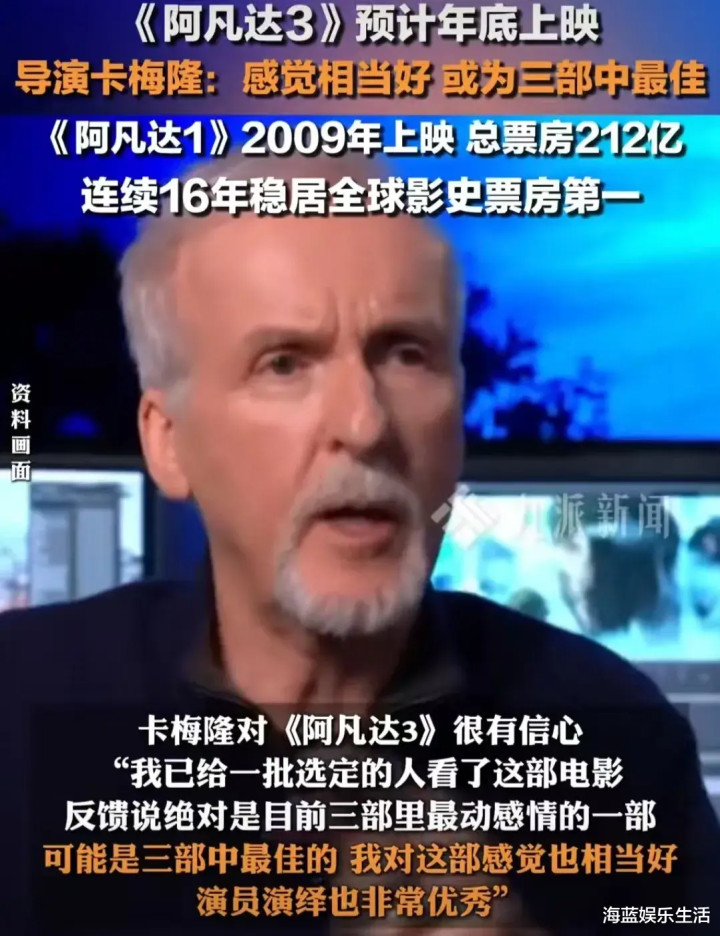 对于观众们的反馈,卡梅隆表示,看过的人都说《阿凡达3》绝对是《阿凡达》目前三部里最动情的一部,可能是三部中最佳的。