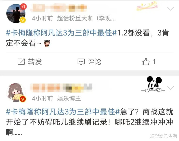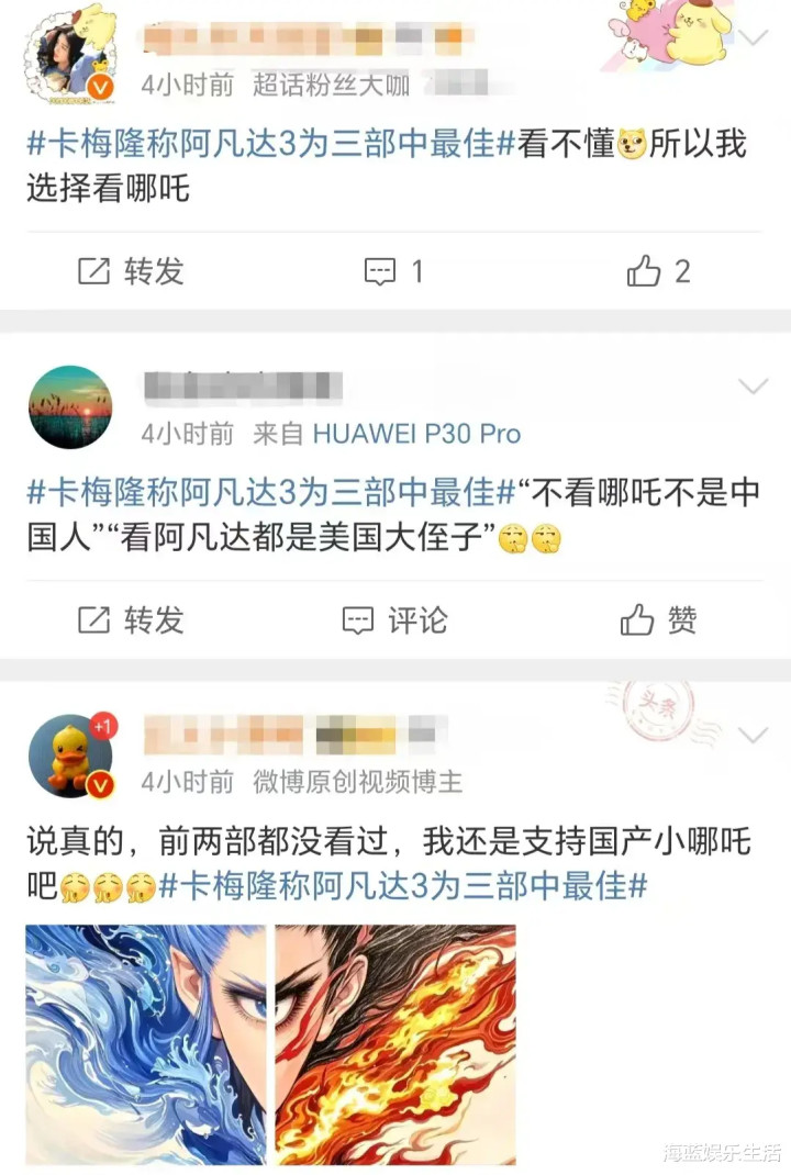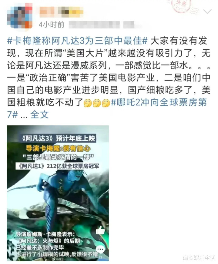 很多网友表示,自己不会去看《阿凡达3》,只等着看《哪吒3》。